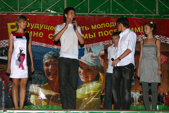 которым была отведена миссия поднять зал, и они с этой миссией справились очень даже неплохо. В ход шли все хитрые уловки из арсенала КВНщиков: были и диалоги с залом, и шутки на местные темы (прим. ред.: Фестиваль молодёжи СтуЖа длится всего 3 дня, но и за эти 3 дня появляются темы, над которыми можно очень даже удачно пошутить, что и доказала команда КВН «Ультра»). Несмотря на проблемы с микрофонами, всё выступление ребята продержались на очень высоком уровне, это было по-настоящему отличное начало!