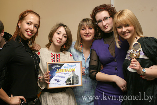 Так вот, в номинации «КВН» были представлены команды КВН «Эдуард Валерьевич» (УО «БелГУТ»), «Янка Брыль» (Гомель-Брилёво, ГГТУ им. Сухова) и «Комплекс полноценности» (УО «БТЭУ ПК»). Вручал награду директор Гомельского клуба весёлых и находчивых Чистов Алексей Владимирович. Алексей Владимирович высказал слова благодарности всем товарищам КВНщикам, которые играли в Гомеле и за его КВНовскими пределами, всем, кто помогал в организации игр. А также «Спасибо родителям!!» Так вот, в дорогой нам всем номинации победили девочки из «Комплекса полноценности».