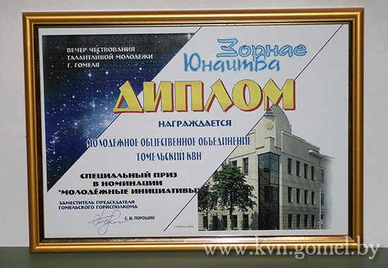 Вручение премии Гомельского городского исполнительного комитета «Зорнае юнацтва» проводится по различным номинациям. Так, со времён прошлогоднего награждения на участие было подано свыше 130 заявок по 16 номинациям. Секций, конечно, много и они различны, но нам интересен КВН.